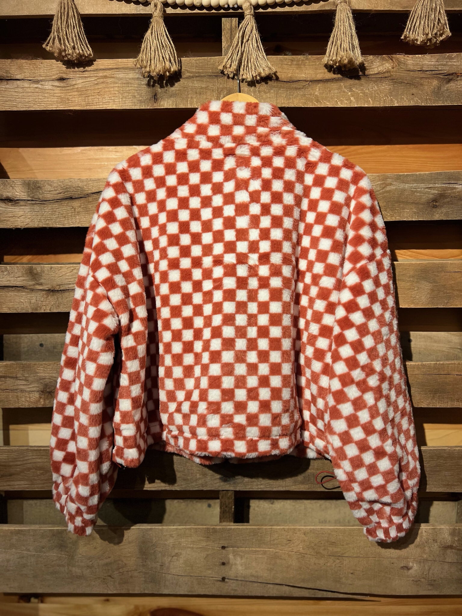checkered sherpa zip up